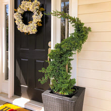 This spiral spruce tree adds elegance to your entryway and looks phenomenal in containers. This topiary tree is incredibly cold hardy and holds up to high winds and deer. -